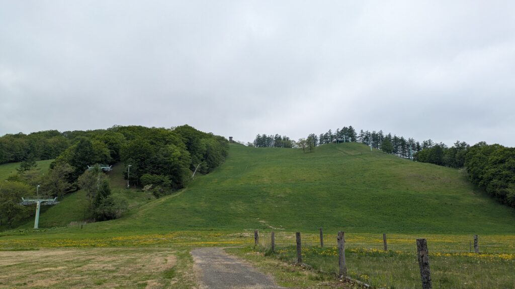 入口からゲレンデの近くまで、ほとんど人気(ひとけ)はありませんが、ゲレンデは、新緑の緑に包まれていて、ゆっくり散歩するには良い感じでした。